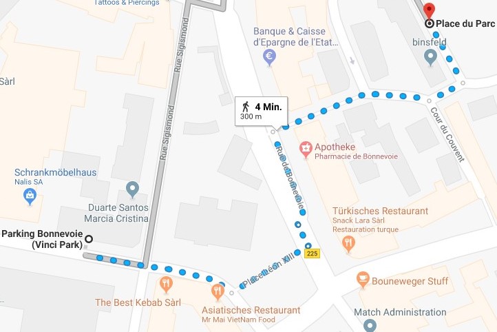![]() *) De Café de la Place ass zu Bouneweg niewent der Agence Binsfeld op der Place du Parc. Fir ze parke proposéiere mer d'Parkhaus Piscine Bonnevoie an der Rue des Ardennes. |